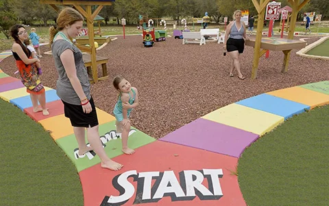 Outdoors, your whole group will enjoy billiards, a candy themed putt-putt mini golf course, glow disc golf, volleyball, tetherball, a human CandyLand board, giant checkers & chess, grilling station & pool area dining for 30+ people & more.